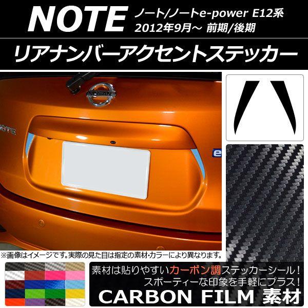リアナンバーアクセントステッカー カーボン調 ニッサン ノート/ノートe-power E12系 前期/後期 2012年09月〜 選べる20カラー 入数:1セット(2枚) AP-CF3307