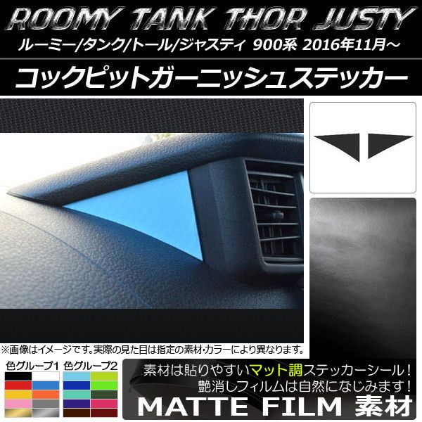 コックピットガーニッシュステッカー マット調 ルーミー/タンク,トール,ジャスティ M900/M910 色グループ1 入数:1セット(2枚) AP-CFMT1148 色グループ1: ブラック ホワイト レッド ブルー イエロー オレンジ ピンク グレー ゴールド シルバー