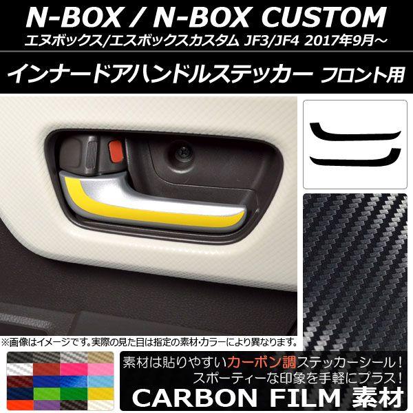 インナードアハンドルステッカー カーボン調 フロント用 ホンダ N-BOX/N-BOXカスタム JF3/JF4 2017年09月〜 選べる20カラー 入数:1セット(2枚) AP-CF2887 カラー: ブラック ホワイト レッド ブルー イエロー グリーン オレンジ パープル ピンク ネイビー ブラウン ボルドー クリア ゴールド シルバー ガンメタリック マゼンタ ダークグリーン メタリックブルー ライトブルー