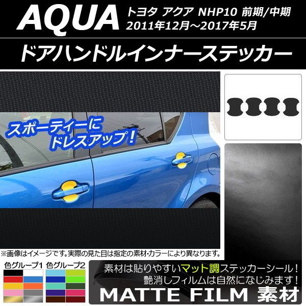 ドアハンドルインナーステッカー マット調 トヨタ アクア NHP10 前期/中期 2011年12月〜2017年05月 色グループ2 入数:1セット(4枚) AP-CFMT528