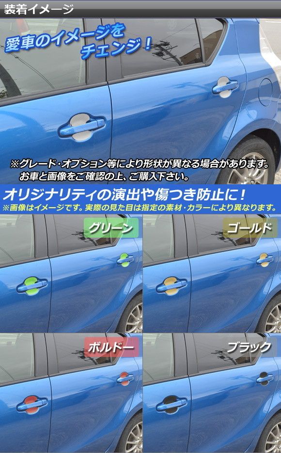 ドアハンドルインナーステッカー マット調 トヨタ アクア NHP10 前期/中期 2011年12月〜2017年05月 色グループ2 入数:1セット(4枚) AP-CFMT528 色グループ2: パープル ブラウン ボルドー マゼンタ ダークグリーン ダークブルー ライトイエロー ライトグリーン ライトブルー シアン