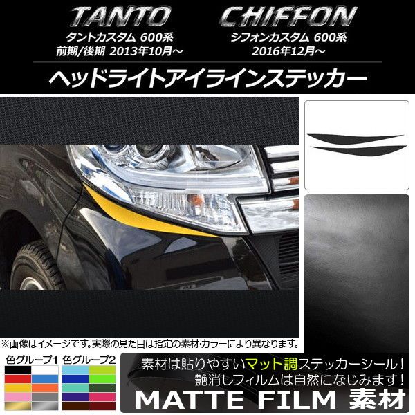 ヘッドライトアイラインステッカー ダイハツ/スバル タントカスタム/シフォンカスタム 600系 マット調 色グループ2 入数:1セット(2枚) AP-CFMT925