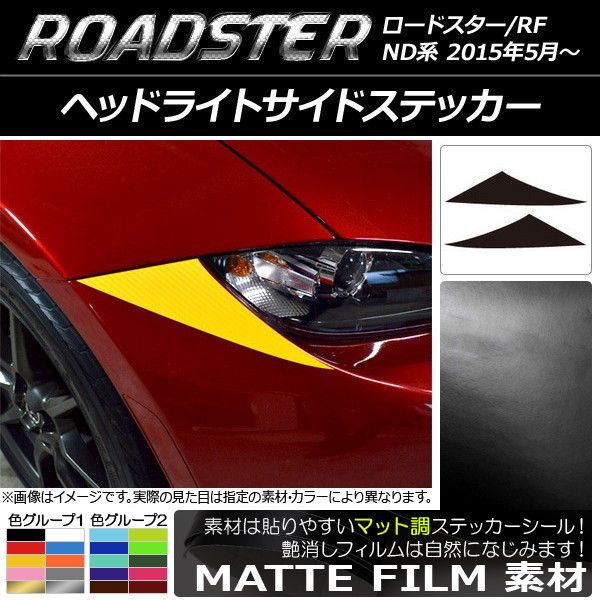 ヘッドライトサイドステッカー マット調 マツダ ロードスター/ロードスターRF ND系 2015年05月〜 色グループ2 入数:1セット(2枚) AP-CFMT2409 色グループ2: パープル ブラウン ボルドー マゼンタ ダークグリーン ダークブルー ライトイエロー ライトグリーン ライトブルー シアン