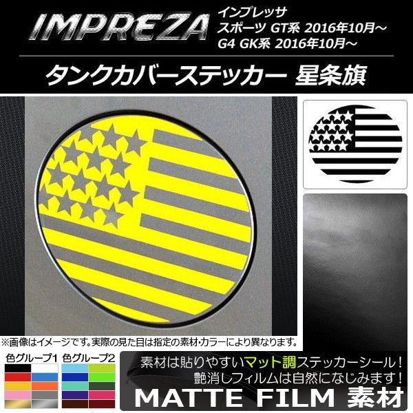 タンクカバーステッカー マット調 星条旗 スバル インプレッサ スポーツ/G4 GT/GK系 2016年10月〜 色グループ2 AP-CFMT2153 色グループ2: パープル ブラウン ボルドー マゼンタ ダークグリーン ダークブルー ライトイエロー ライトグリーン ライトブルー シアン