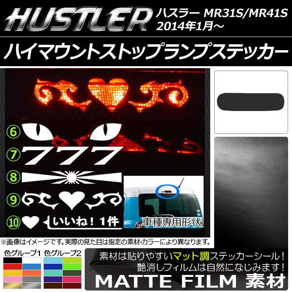 ハイマウントストップランプステッカー マット調 スズキ ハスラー MR31S/MR41S 色グループ2 タイプグループ2 AP-CFMT861 色グループ2: パープル ブラウン ボルドー マゼンタ ダークグリーン ダークブルー ライトイエロー ライトグリーン ライトブルー シアン