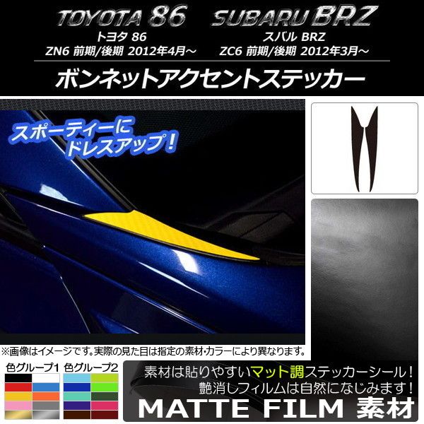 ボンネットアクセントステッカー マット調 トヨタ/スバル 86/BRZ ZN6/ZC6 前期/後期 2012年03月〜 色グループ2 入数:1セット(2枚) AP-CFMT2202