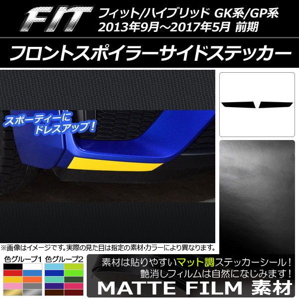 フロントスポイラーサイドステッカー マット調 ホンダ フィット/ハイブリッド GK系/GP系 前期 色グループ2 入数:1セット(2枚) AP-CFMT2260