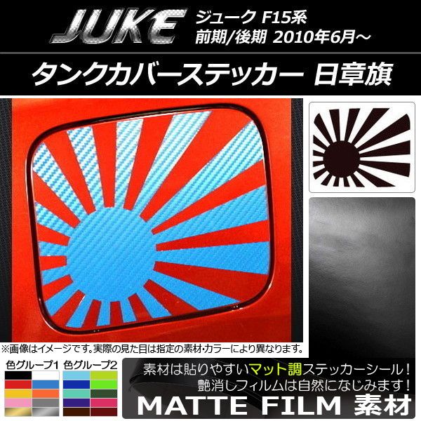 タンクカバーステッカー マット調 日章旗 ニッサン ジューク F15系 前期/後期 色グループ2 AP-CFMT1861 色グループ2: パープル ブラウン ボルドー マゼンタ ダークグリーン ダークブルー ライトイエロー ライトグリーン ライトブルー シアン