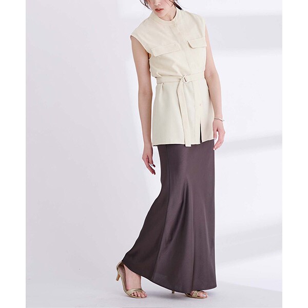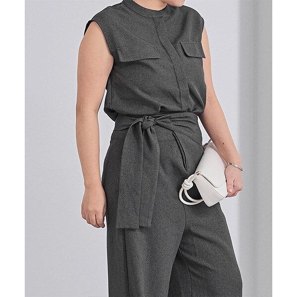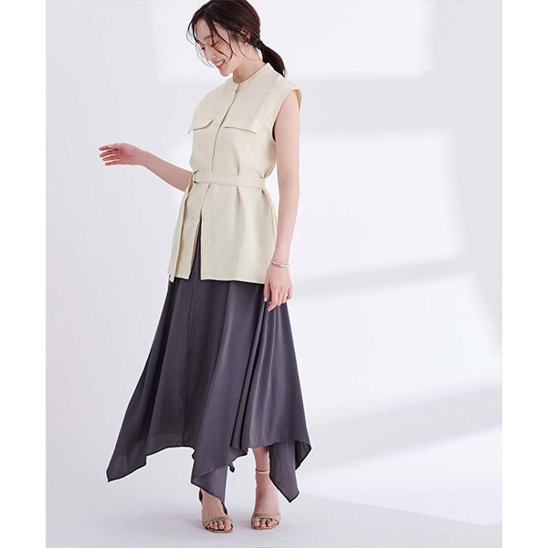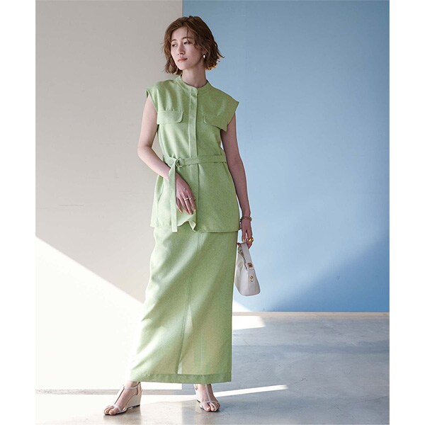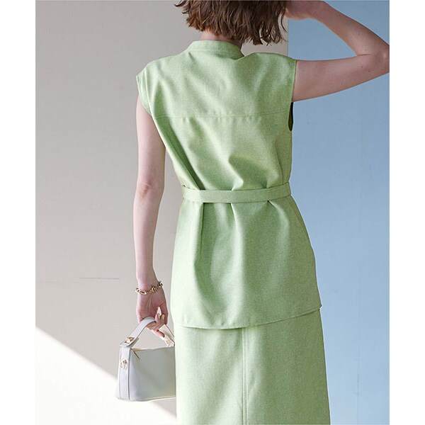 共布のベルト付きなので、ウエスト部分を絞ったスタイリングも可能。