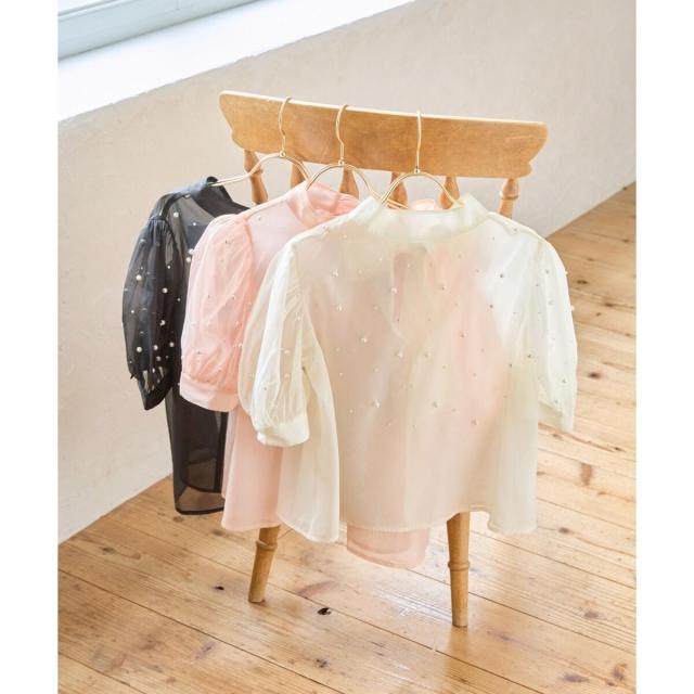 1枚で着映えするパールブラウス