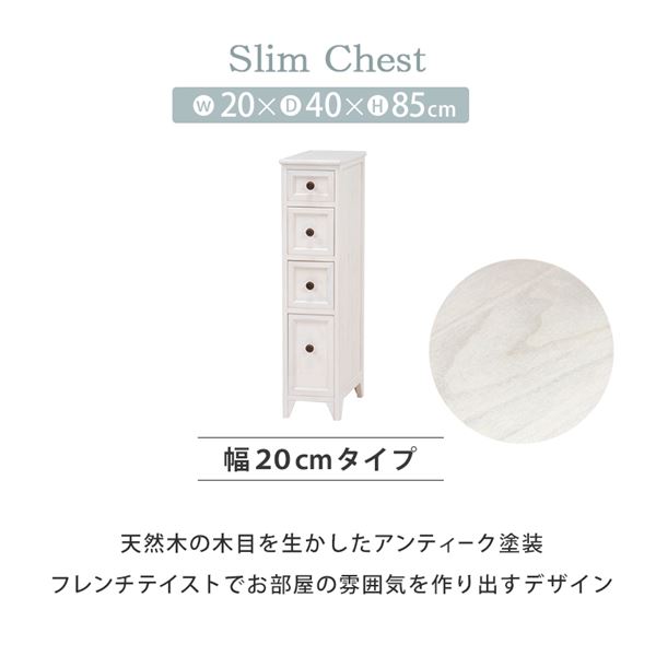 シャビーウッドファニチャー スリムチェスト(アンティークホワイト) MCH-5480AW【MCH-5480AW】