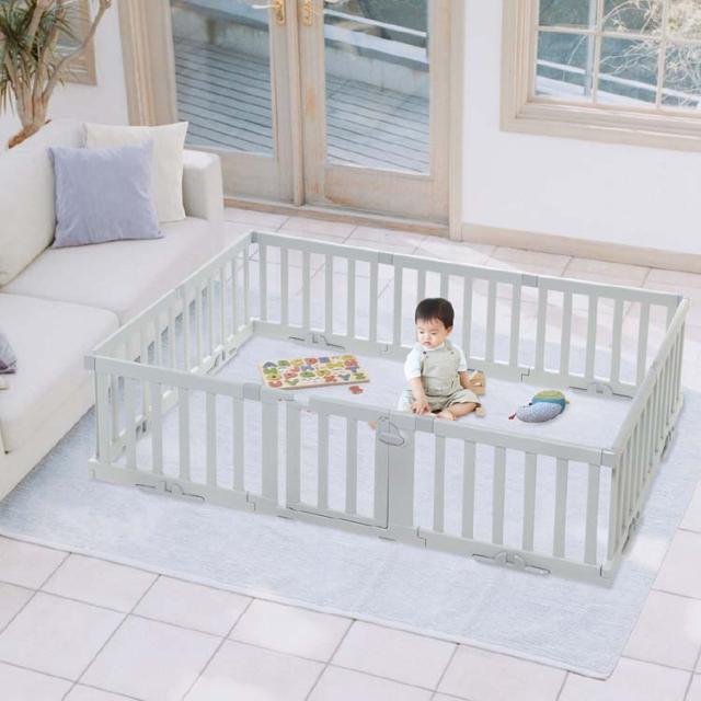 パーテーションにも使えるベビーサークル ドア付 ライトグレー(10枚入)[ゲート]