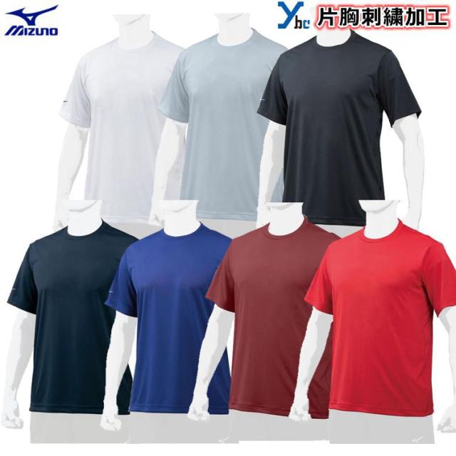 【左胸刺繍加工 袖刺繍加工 丸首Tシャツ】 ミズノ Tシャツ 野球 シャツ 練習着 移動着 チーム 吸汗速乾 軽量 チームウェア 刺繍 12JA7T62 ybc |