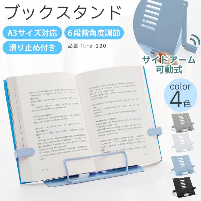 本立てブックスタンドブックスタンド 読書スタンド 本読みスタンド 書見台 譜面台 傾斜台 本立て 卓上 折り畳み 折りたたみ 折り畳み式 折りたたみ式 角度調節 角度調整 ストッパー 勉強 教科書 学習 読書 レシピ 楽譜 頑丈 丈夫 黒 青 水色 灰 白 スチール ステンレス