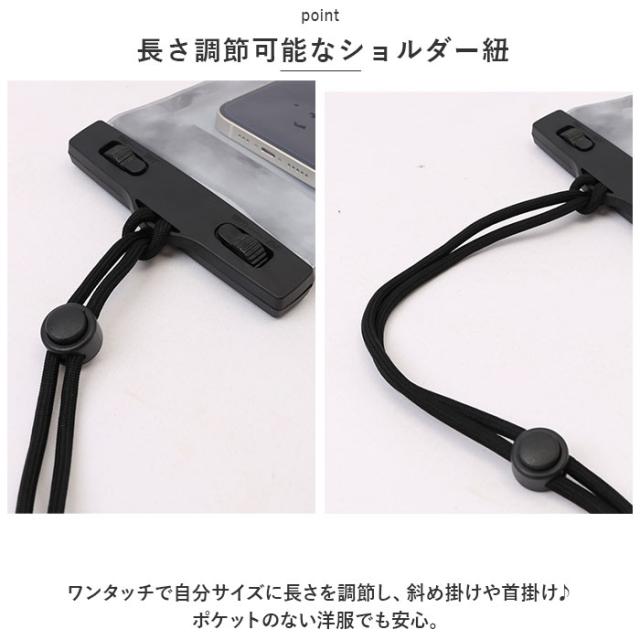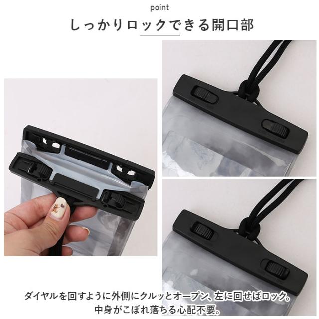 | 商品説明 | ・マルチに活躍!うれしい防水タイプのスマホケースが新登場。 【涼しげな水彩カラー】 ・夏にぴったりな、色味をミックスされた水彩カラーがおしゃれ☆裏面は中身が見えるクリアカラー。 【IPX8防水仕様】 ・防水規格の最高水準IPX8取得!大切なスマホを水濡れからガードしてくれるので、プールや海水浴などのレジャーシーンでも大活躍◎(※全ての状況で防水機能を保証するものではございません。水中では使用しないでください。) 【そのまま操作OK】 ・ケースに入れたまま、スマホの操作がラクラク。W78mm×H161mm×D8mmまでのスマホを収納可能。(※機種の形状等により入らない場合もございます。) 【しっかりロックできる開口部】 ・ダイヤルを回すように外側にクルッとオープン、左に回せばロック。中身がこぼれ落ちる心配不要。 【便利な内ポケット付き】 ・内側のクリアポケットには、鍵や少量の小銭をIN。ケース1つに、最低限の貴重品をまとめて移動できちゃう! 【写真撮影にうれしいスタンド機能】 ・面ファスナー式のスタンドを装備!動画の視聴やセルフ写真撮影にも対応。 【長さ調節可能なショルダー紐】 ・ワンタッチで自分サイズに長さを調節し、斜め掛けや首掛け♪ポケットのない洋服でも安心。 |