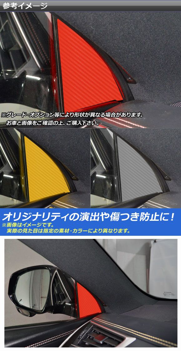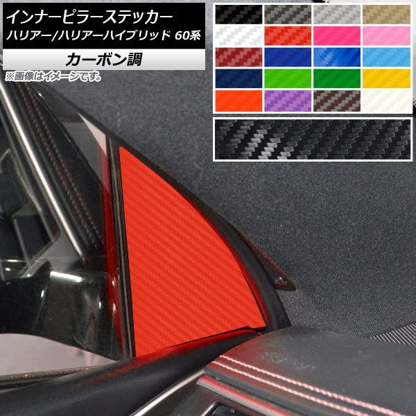 インナーピラーステッカー カーボン調 トヨタ ハリアー/ハリアーハイブリッド 60系 2013年12月〜2020年05月 選べる20カラー 入数:1セット(2枚) AP-CF4190 カラー: ブラック ホワイト レッド ブルー イエロー グリーン オレンジ パープル ピンク ネイビー ブラウン ボルドー クリア ゴールド シルバー ガンメタリック マゼンタ ダークグリーン メタリックブルー ライトブルー