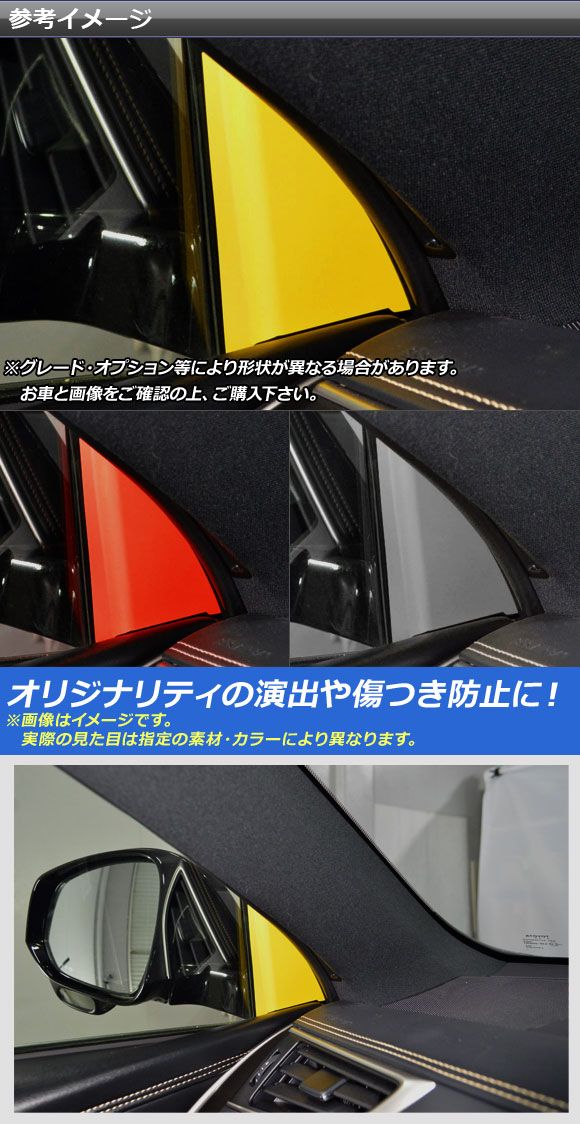 インナーピラーステッカー マット調 トヨタ ハリアー/ハリアーハイブリッド 60系 2013年12月〜2020年05月 色グループ1 入数:1セット(2枚) AP-CFMT4190 色グループ1: ブラック ホワイト レッド ブルー イエロー オレンジ ピンク グレー ゴールド シルバー
