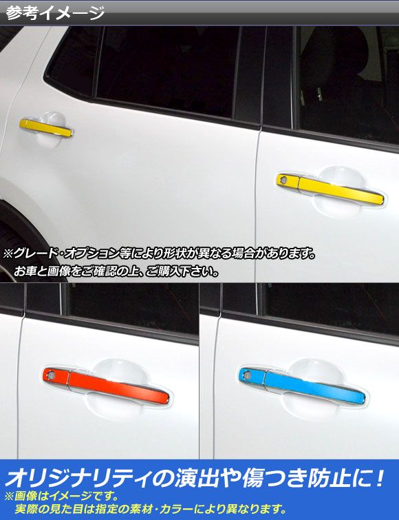 ドアハンドルステッカー マット調 トヨタ ダイハツ ライズ ロッキー A200A,A210A A200S,A210S 2019年11月〜 色グループ2 入数:1セット(8枚) AP-CFMT4032 色グループ2: パープル ブラウン ボルドー マゼンタ ダークグリーン ダークブルー ライトイエロー ライトグリーン ライトブルー シアン