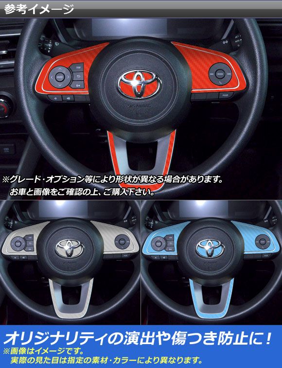 ステアリングステッカーセット カーボン調 トヨタ ライズ A200A,A210A 2019年11月〜 選べる20カラー AP-CF4027 カラー: ブラック ホワイト レッド ブルー イエロー グリーン オレンジ パープル ピンク ネイビー ブラウン ボルドー クリア ゴールド シルバー ガンメタリック マゼンタ ダークグリーン メタリックブルー ライトブルー