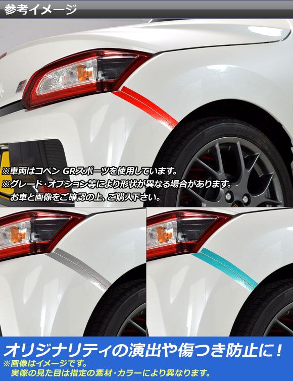 リアフェンダーストライプステッカー クローム調 トヨタ ダイハツ コペン ローブ/GRスポーツ 選べる20カラー 入数:1セット(4枚) AP-CRM4229 カラー: ブラック ホワイト レッド ブルー イエロー グリーン オレンジ パープル ピンク ネイビー ブラウン ボルドー ゴールド シルバー マゼンタ ダークグリーン ライトグリーン ライトブルー ローズゴールド シアン