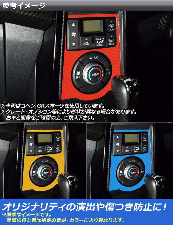 エアコンパネルステッカー カーボン調 コペン GRスポーツ コペン ローブ/セロ/エクスプレイ/GRスポーツ LA400A LA400K 選べる20カラー AP-CF4224 カラー: ブラック ホワイト レッド ブルー イエロー グリーン オレンジ パープル ピンク ネイビー ブラウン ボルドー クリア ゴールド シルバー ガンメタリック マゼンタ ダークグリーン メタリックブルー ライトブルー