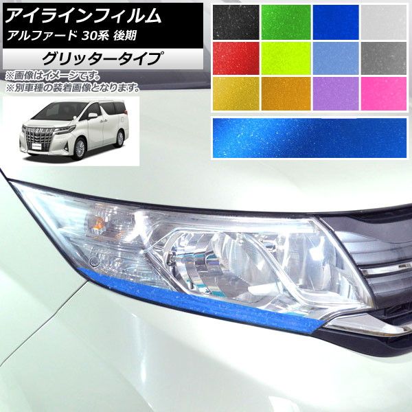アイラインフィルム グリッタータイプ トヨタ アルファード 30系 後期 2018年01月〜 選べる12カラー 入数:1セット(2枚) AP-YLGL232 カラー: ブラック ホワイト レッド ブルー イエロー グリーン オレンジ パープル ピンク ライトイエロー ライトブルー ライトブラック