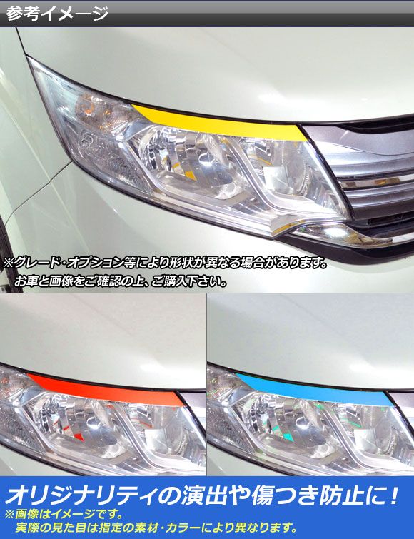 ヘッドライトトップステッカー マット調 ホンダ ステップワゴン/スパーダ RP1,RP2,RP3,RP4 色グループ2 入数:1セット(2枚) AP-CFMT4017 色グループ2: パープル ブラウン ボルドー マゼンタ ダークグリーン ダークブルー ライトイエロー ライトグリーン ライトブルー シアン