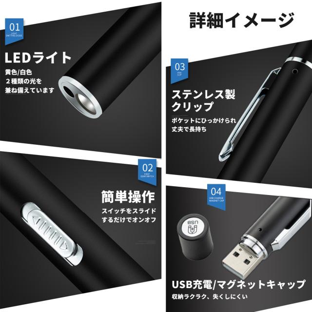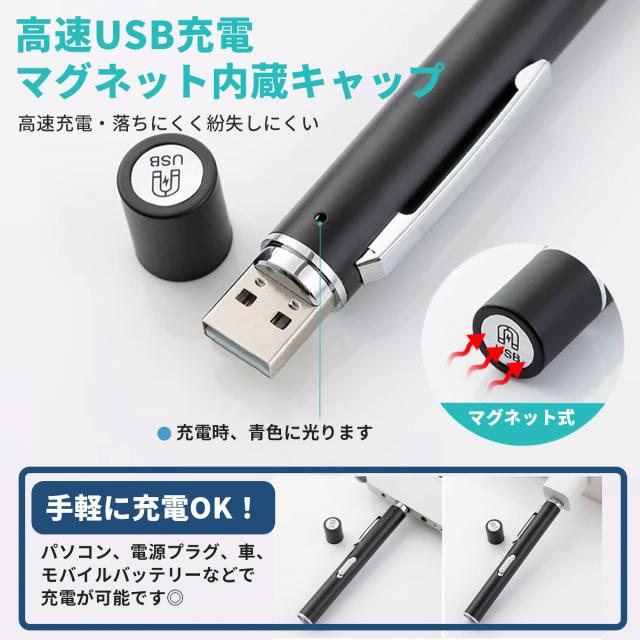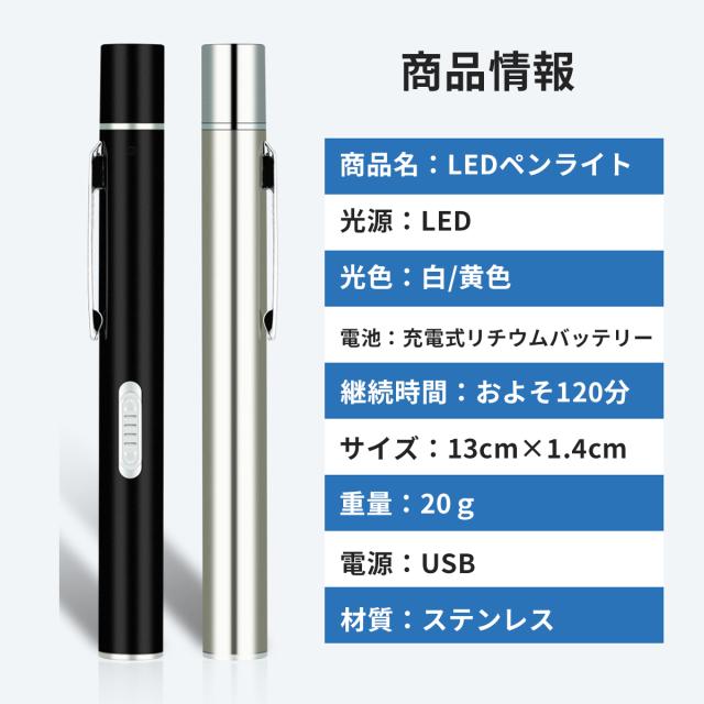 ペンライト 医療用 医療 瞳孔 黄色 黒 歯科 LED シルバー メディカルライト ナースペンライト ナースグッズ 看護師 看護 医師 暖色 おすすめ usb 充電式 白色 2色 明るい マグネット キャップ シンプル 眼科 送料無料