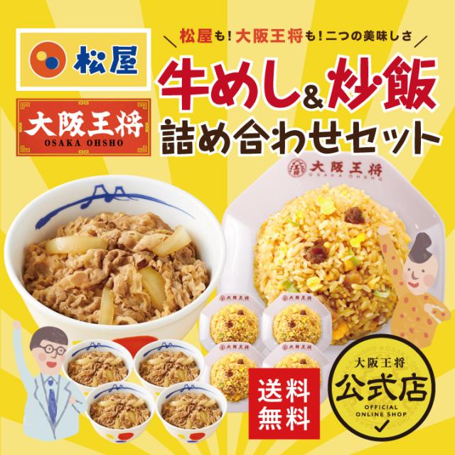 ≪松屋×大阪王将≫牛めし&炒飯詰め合わせセット【送料無料】 チャーハン 牛めし 牛丼 冷凍食品 炒飯 惣菜 お弁当 リモート ギフト 業務用 仕送り 福袋 お取り寄せ レンチン可 おすすめ商品