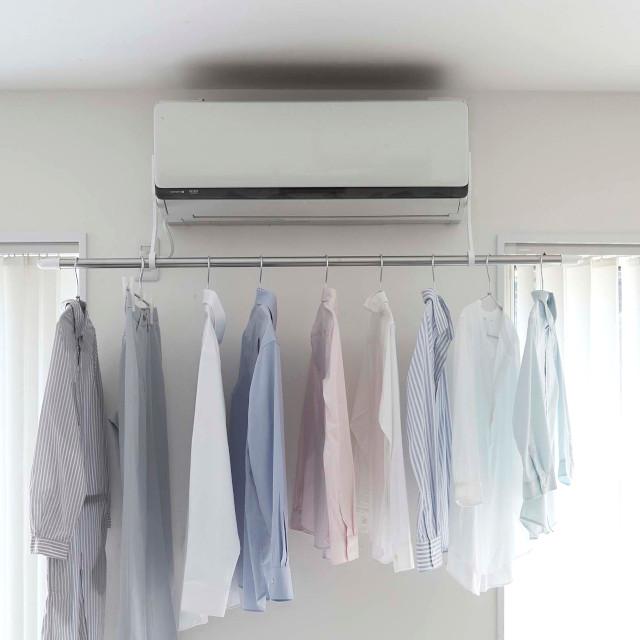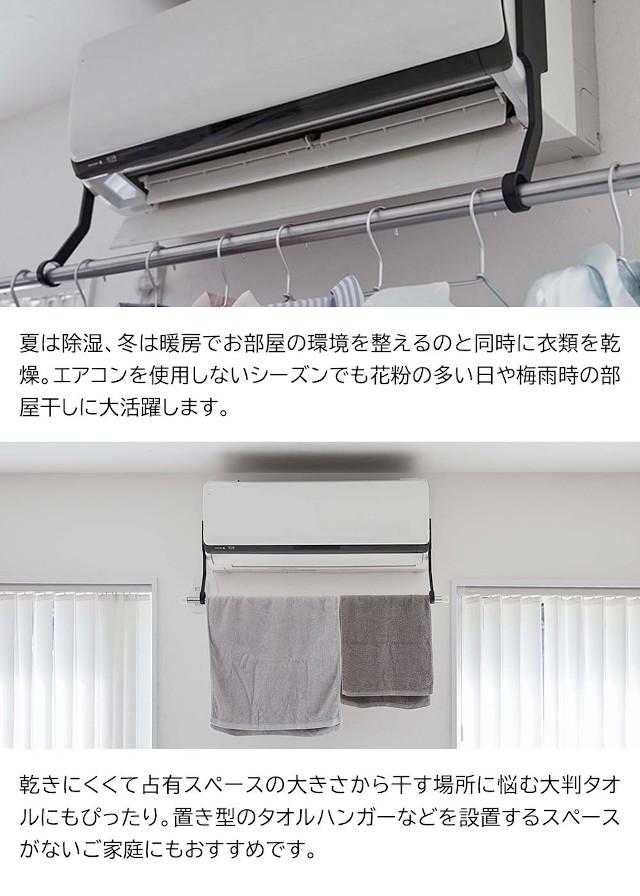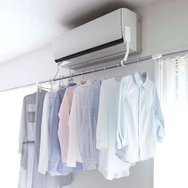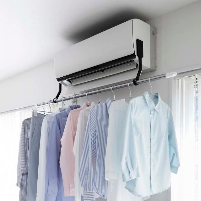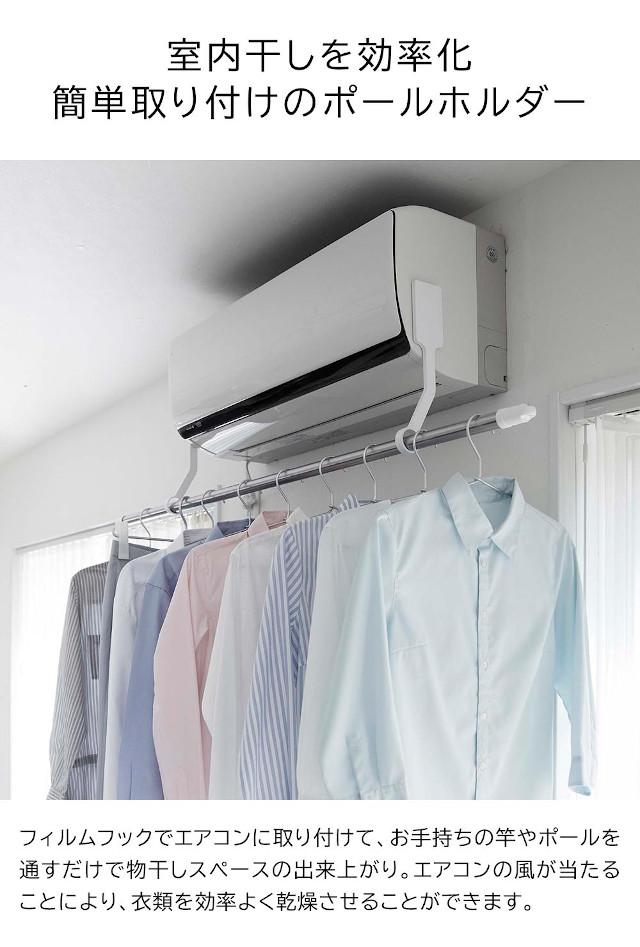 エアコンの風を直接当てて、洗濯物を効率よく乾かすことができる室内物干しポールホルダー。
