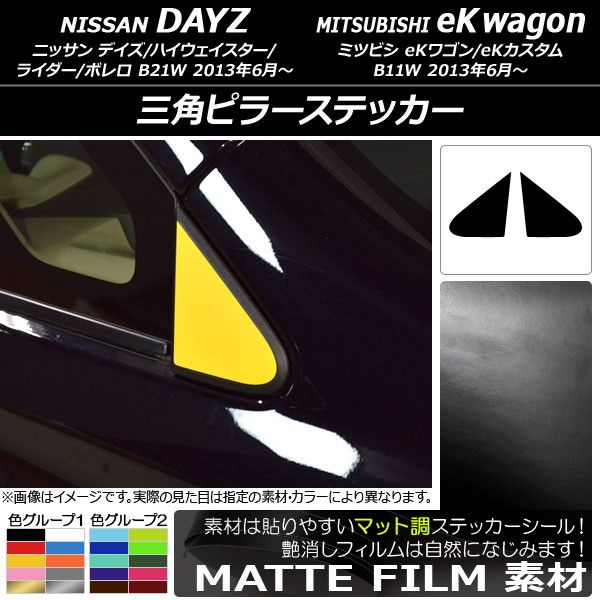 三角ピラーステッカー マット調 ニッサン/ミツビシ デイズ/eKワゴン B21W/B11W 前期/後期 2013年06月〜 色グループ1 入数:1セット(2枚) AP-CFMT3647 色グループ1: ブラック ホワイト レッド ブルー イエロー オレンジ ピンク グレー ゴールド シルバー
