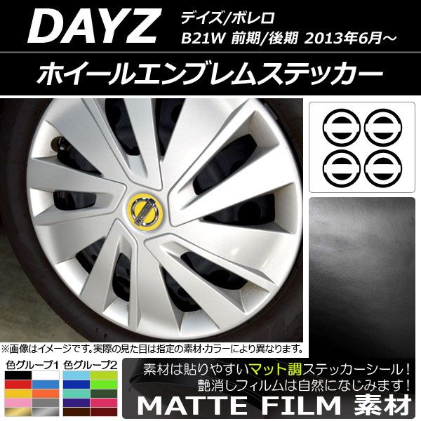 ホイールエンブレムステッカー マット調 ニッサン デイズ/ボレロ B21W 前期/後期 2013年06月〜 色グループ1 AP-CFMT3667