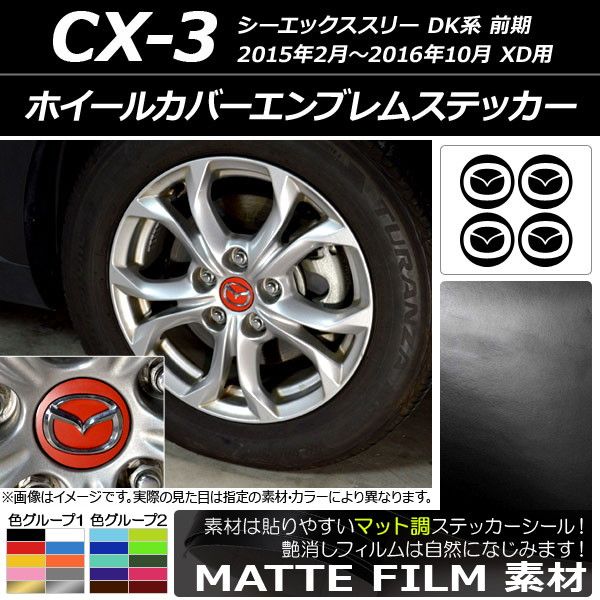 ホイールカバーエンブレムステッカー マット調 マツダ CX-3 DK系 前期 XD用 2015年02月〜2016年10月 色グループ1 AP-CFMT3206