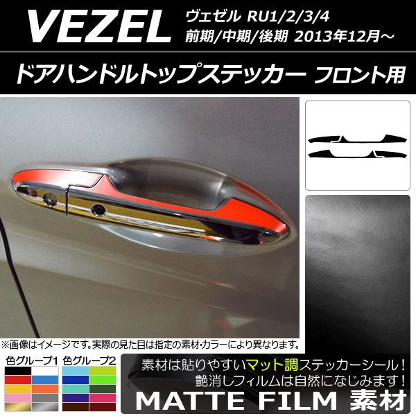 ドアハンドルトップステッカー マット調 フロント用 ホンダ/本田/HONDA ヴェゼル RU1/2/3/4 前期/中期/後期 2013年12月〜 色グループ1 AP-CFMT3492 色グループ1: ブラック ホワイト レッド ブルー イエロー オレンジ ピンク グレー ゴールド シルバー