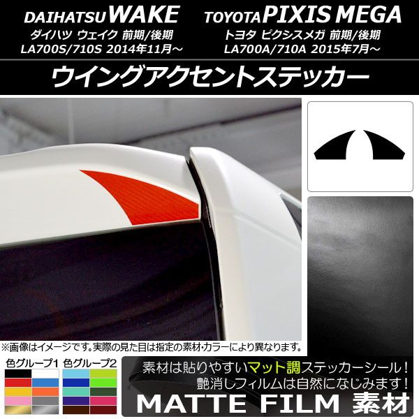 ウイングアクセントステッカー マット調 ダイハツ/トヨタ ウェイク/ピクシスメガ LA700系 2014年11月〜 色グループ1 入数:1セット(2枚) AP-CFMT3003 色グループ1: ブラック ホワイト レッド ブルー イエロー オレンジ ピンク グレー ゴールド シルバー