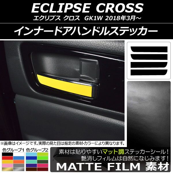 インナードアハンドルステッカー マット調 ミツビシ エクリプス クロス GK1W 2018年03月〜 色グループ2 入数:1セット(4枚) AP-CFMT3793 色グループ2: パープル ブラウン ボルドー マゼンタ ダークグリーン ダークブルー ライトイエロー ライトグリーン ライトブルー シアン