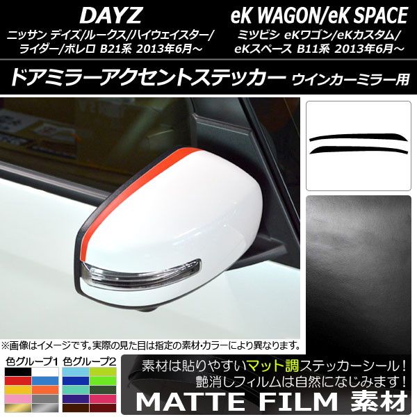 ドアミラーアクセントステッカー マット調 デイズ/デイズルークス/eKワゴン/eKカスタム/eKスペース B21系/B11系 色グループ2 入数:1セット(2枚) AP-CFMT3603