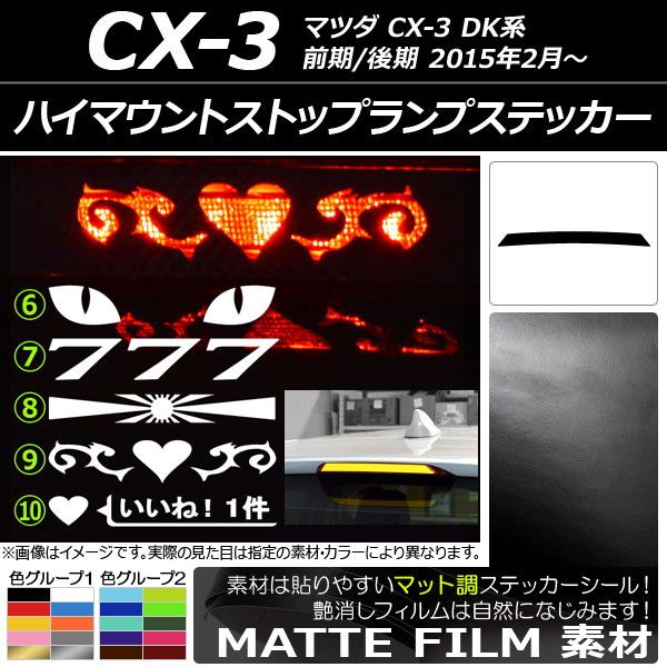 ハイマウントストップランプステッカー マット調 マツダ CX-3 DK系 前期/後期 2015年02月〜 色グループ2 タイプグループ2 AP-CFMT3372 色グループ2: パープル ブラウン ボルドー マゼンタ ダークグリーン ダークブルー ライトイエロー ライトグリーン ライトブルー シアン