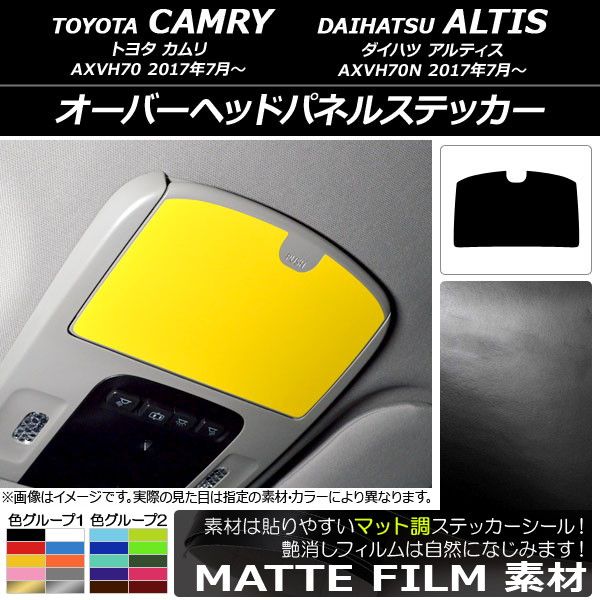 オーバーヘッドパネルステッカー マット調 トヨタ/ダイハツ カムリ/アルティス XV70系 2017年07月〜 色グループ1 AP-CFMT3162 色グループ1: ブラック ホワイト レッド ブルー イエロー オレンジ ピンク グレー ゴールド シルバー