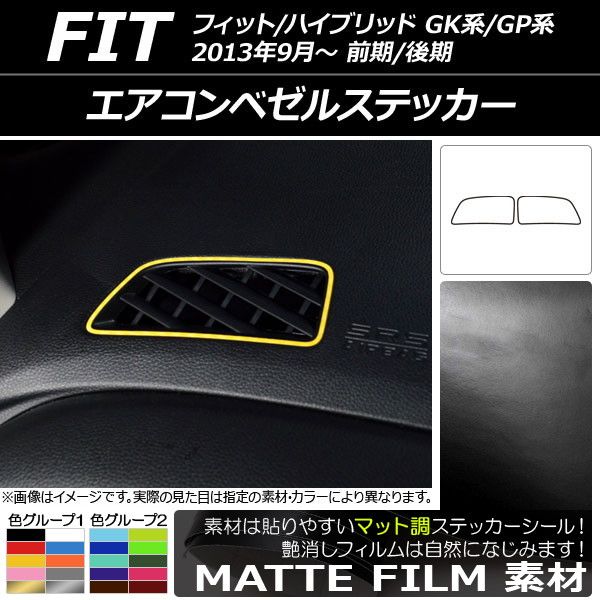 エアコンベゼルステッカー マット調 ホンダ フィット/ハイブリッド GK系/GP系 前期/後期 2013年09月〜 色グループ1 入数:1セット(2枚) AP-CFMT2355 色グループ1: ブラック ホワイト レッド ブルー イエロー オレンジ ピンク グレー ゴールド シルバー