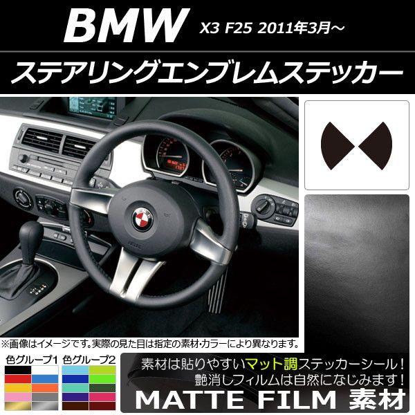 ステアリングエンブレムステッカー マット調 BMW X3 F25 2011年03年〜 色グループ2 AP-CFMT2698