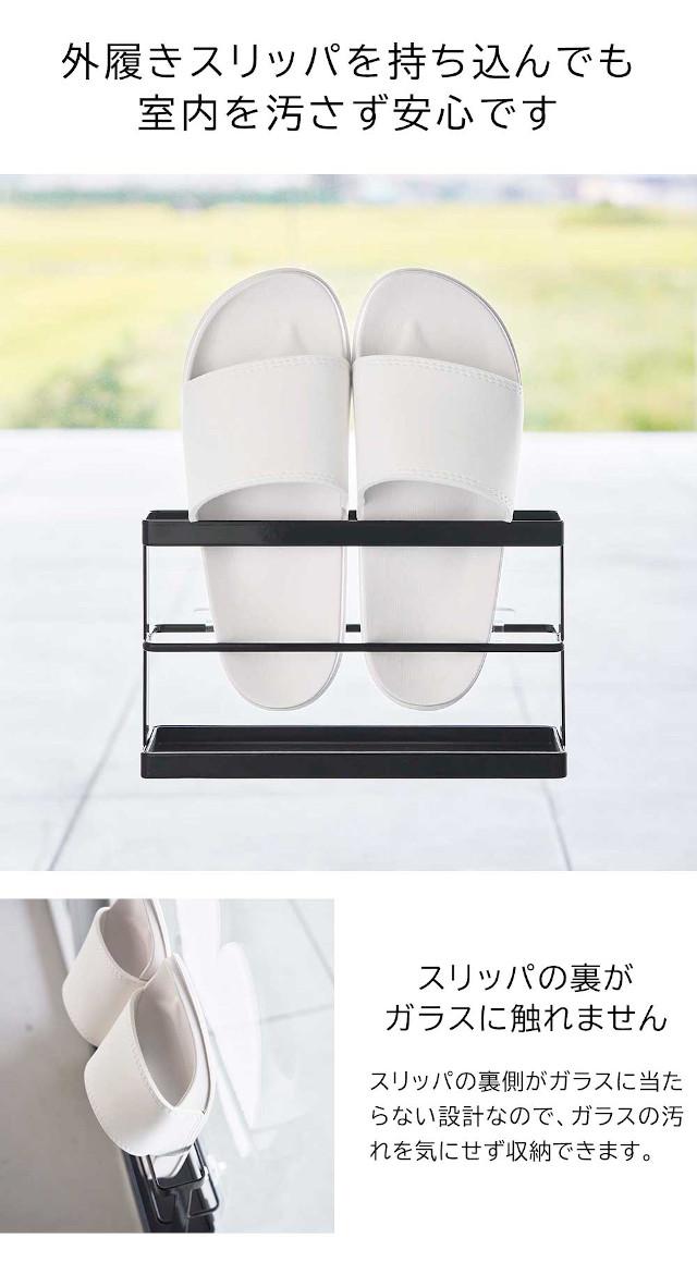 雨・風を避けて屋内外でベランダスリッパを浮かせて収納!