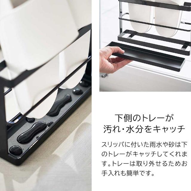 ベランダスリッパに付いた雨水等もトレーがキャッチするので室内でも使用できます。