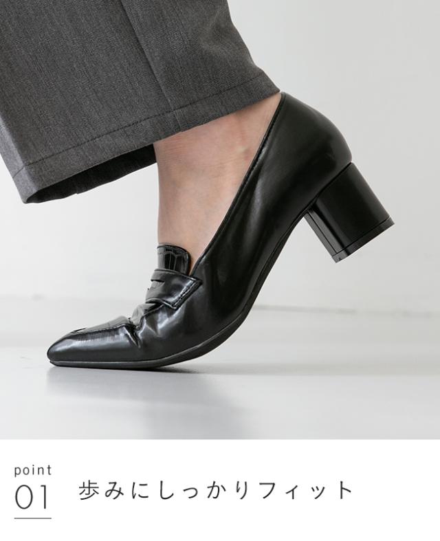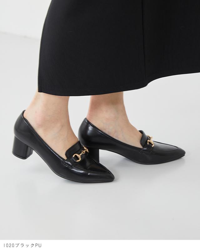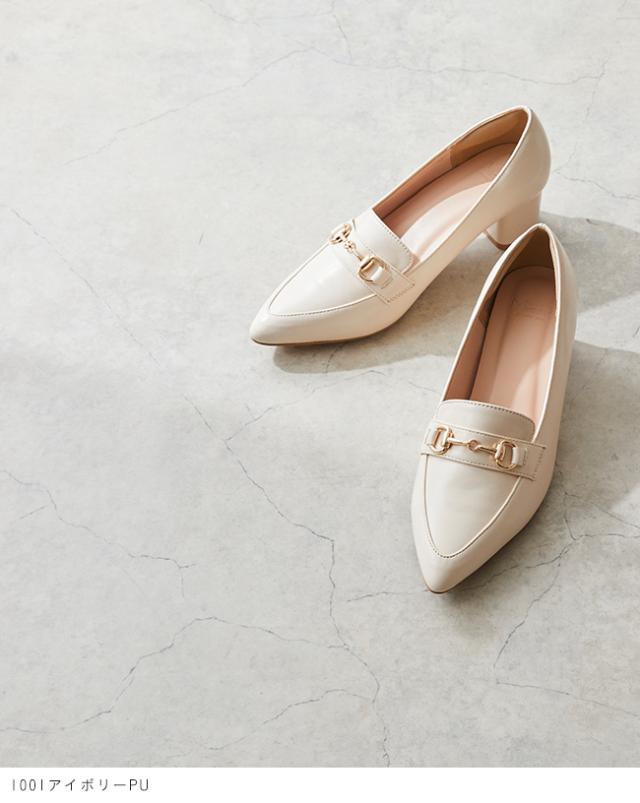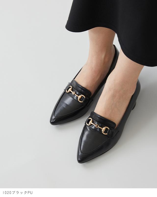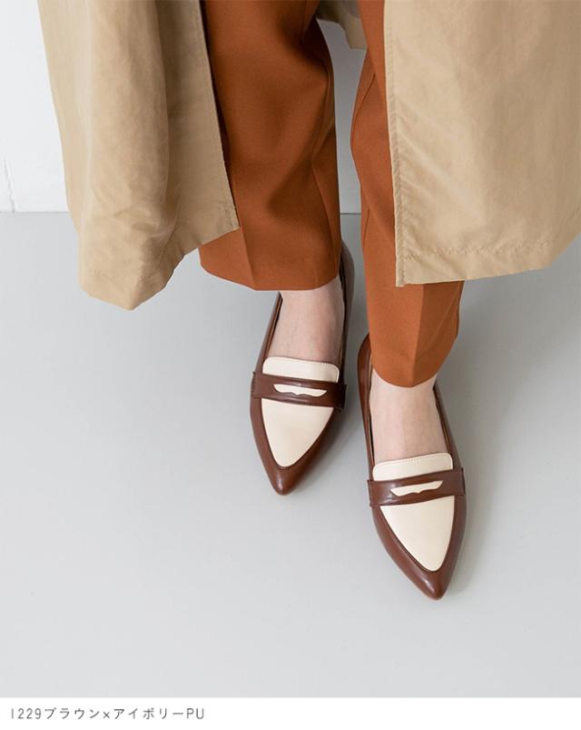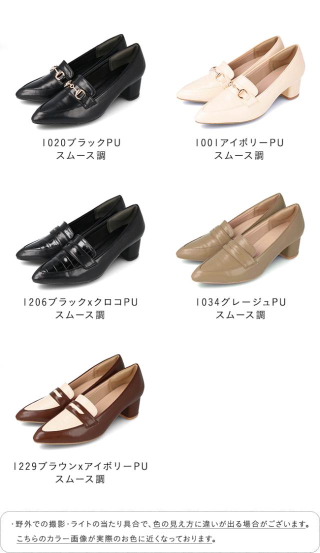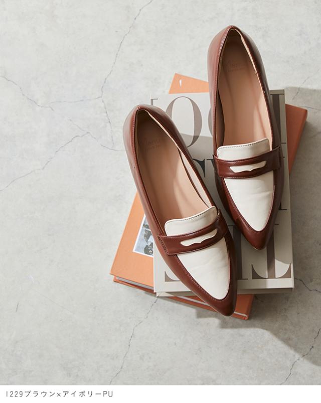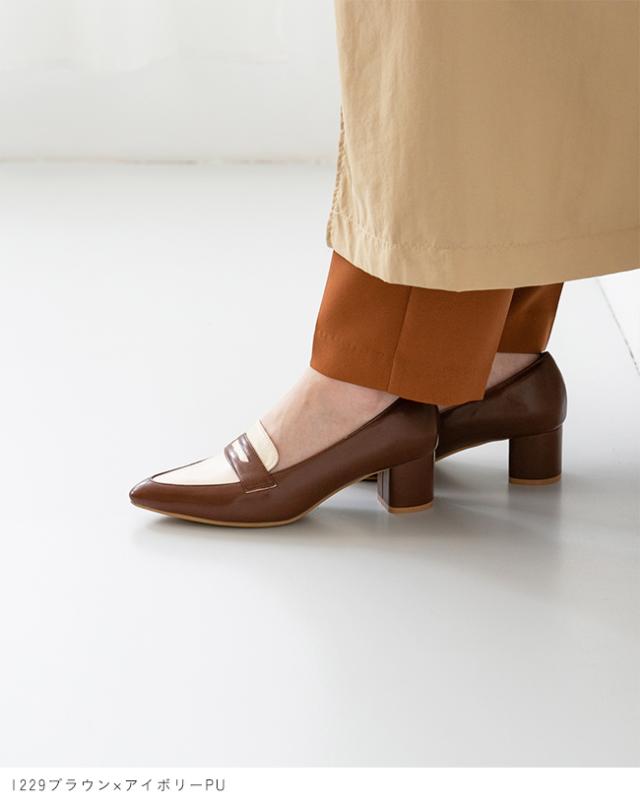 ローファーパンプス レディース ミドルヒール 痛くない 歩きやすい ポインテッドトゥ ビット コイン バイカラー 上品 送料無料