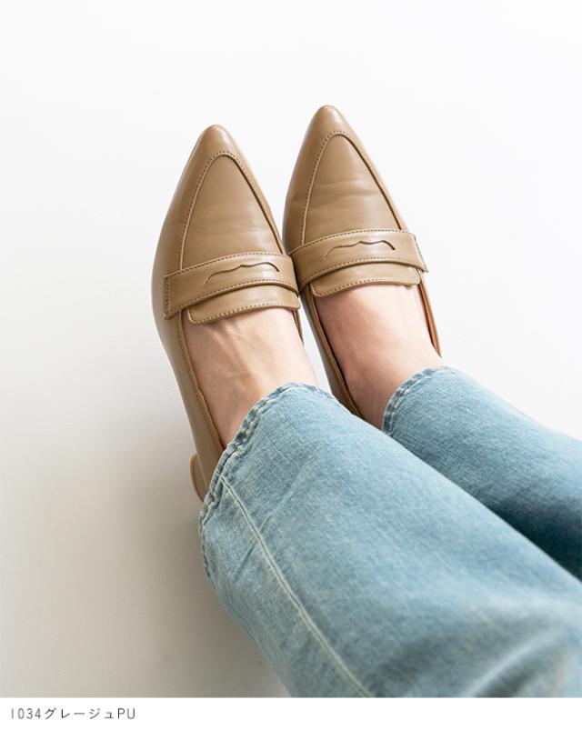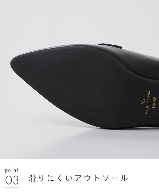 パンツや長めのスカートに合わせると、つま先のポインテッドのシルエットがチラ見えし、