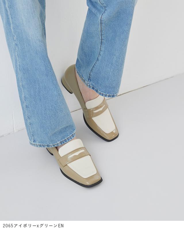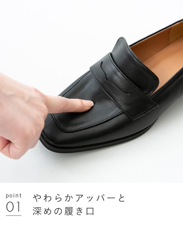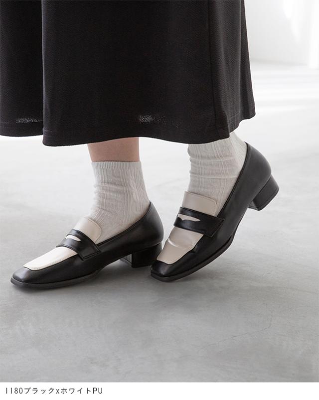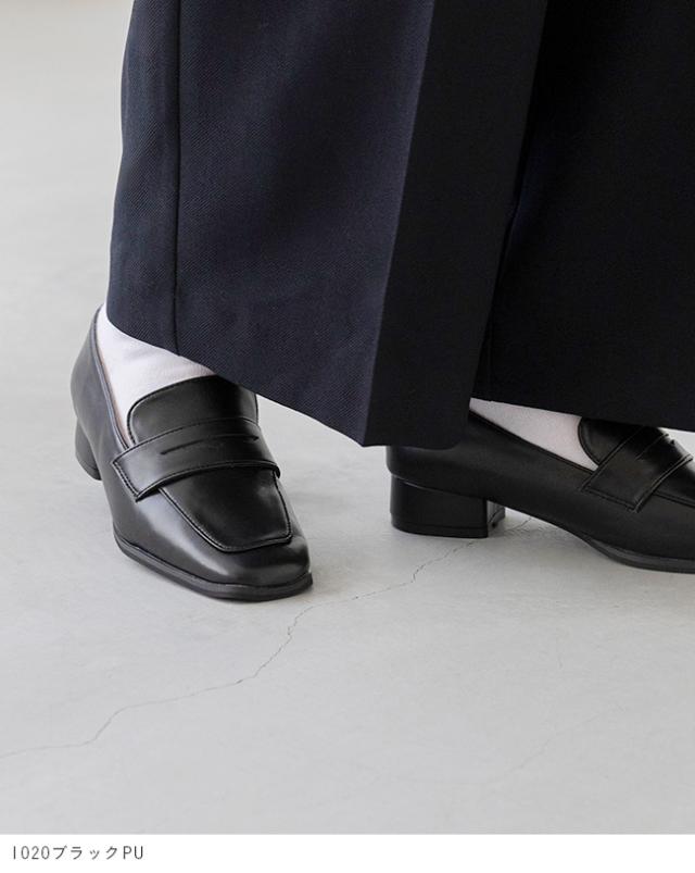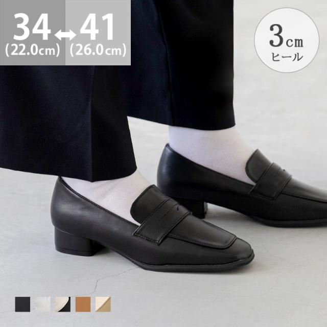 ローファー レディース 3cmヒール ミドルヒール 痛くない 歩きやすい スクエアトゥ コインローファー 甲深 送料無料