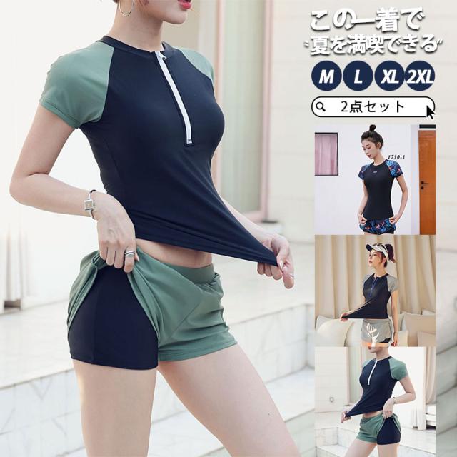 【水曜日まで!10%クーポン配布中】 【タイムセール、10倍ポイント】フィットネス水着 競泳水着 レディース 水着 セパレーツタイプ スリム 2点セット トレーニング スポーツ セパレート 半袖 ファ