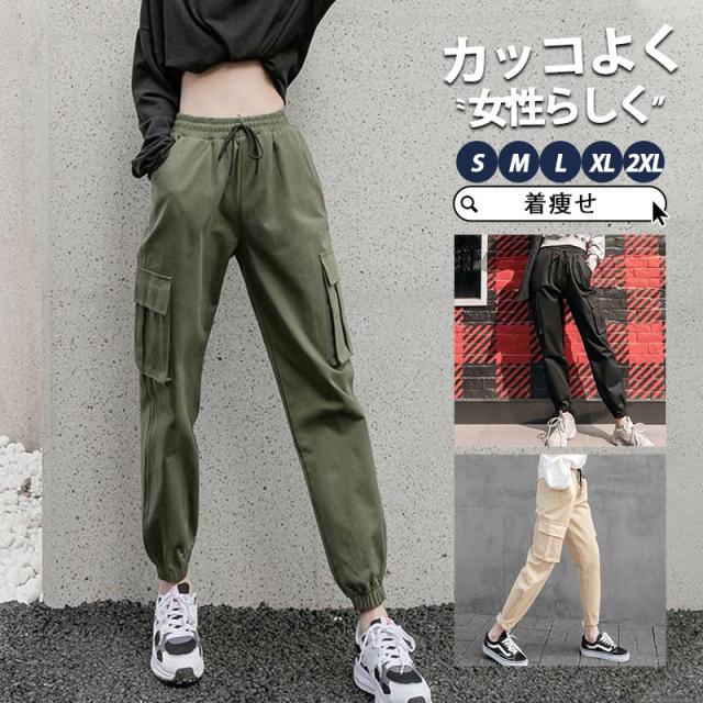 カーゴパンツ レディース ロングパンツ ジョガーパンツ チノパン ワークパンツ カジュアル ボトムス 無地 着痩せ おしゃれ 体型