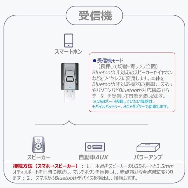 接続方法:USBタイプA & 3.5mmオーディオポート<=>Bluetooth