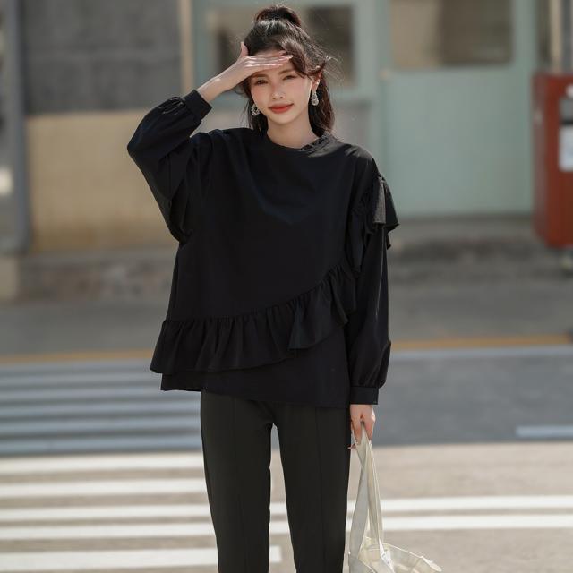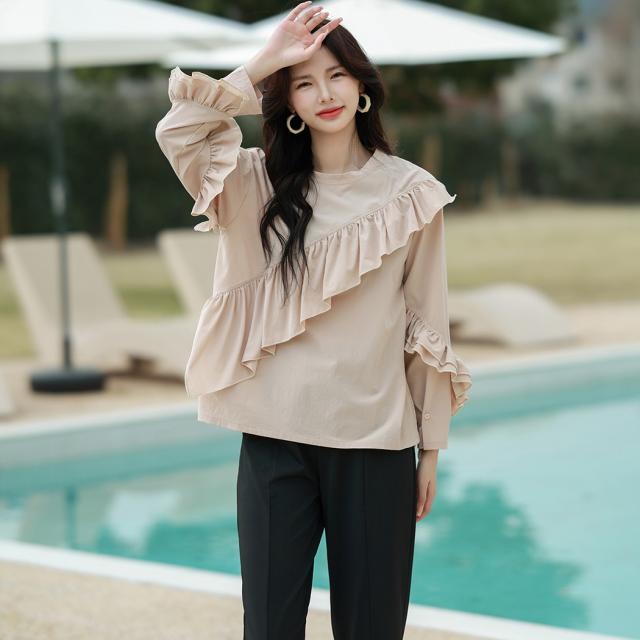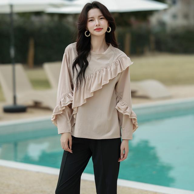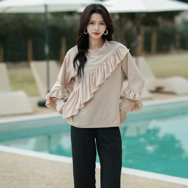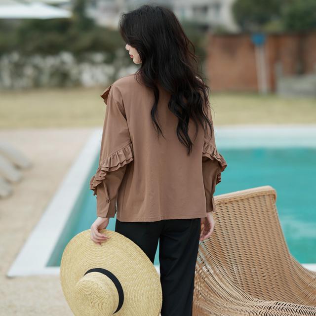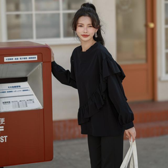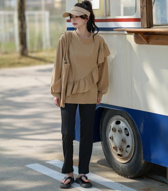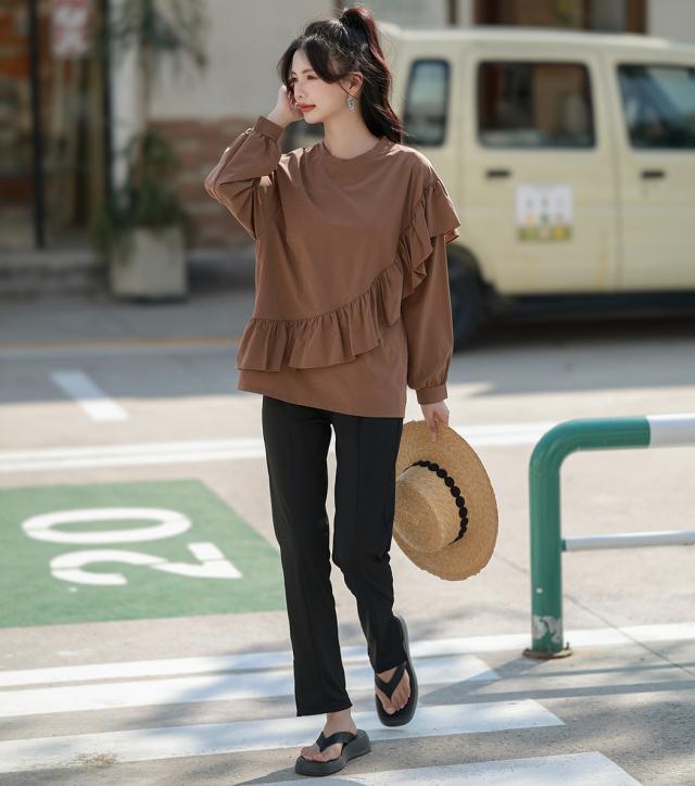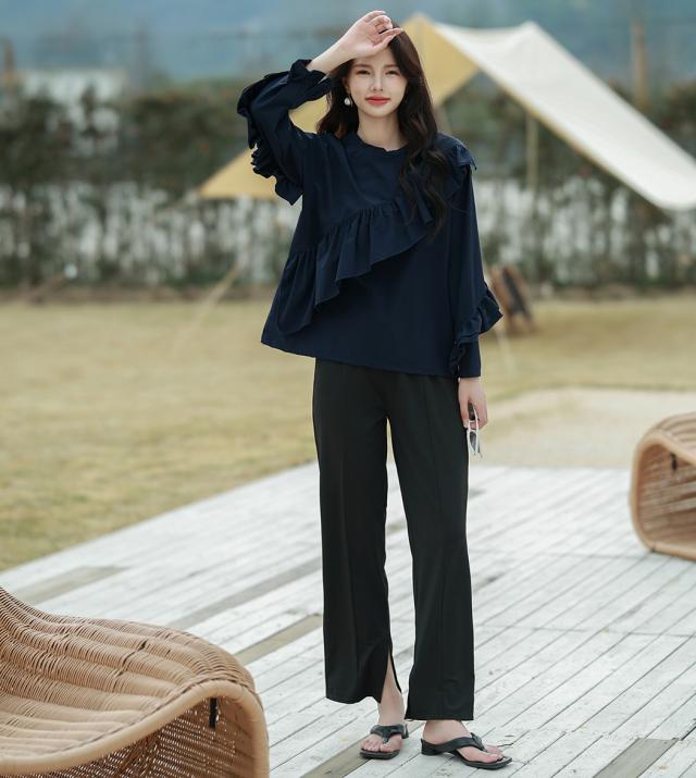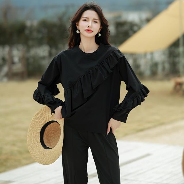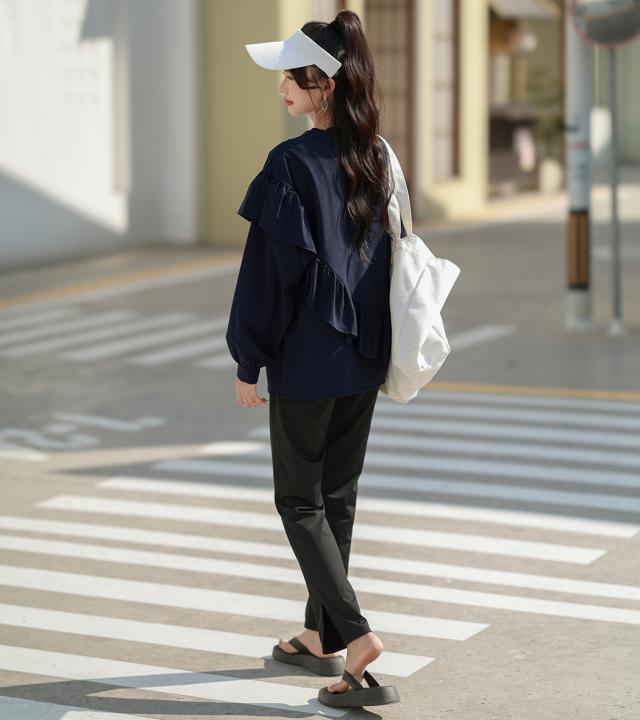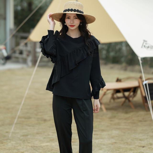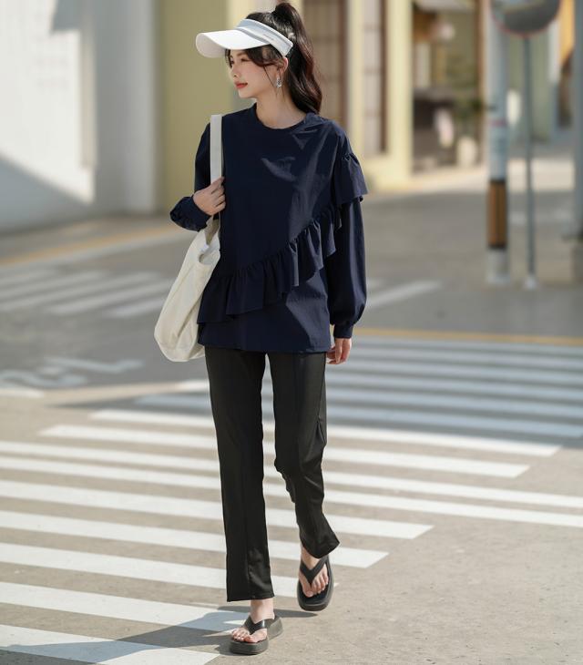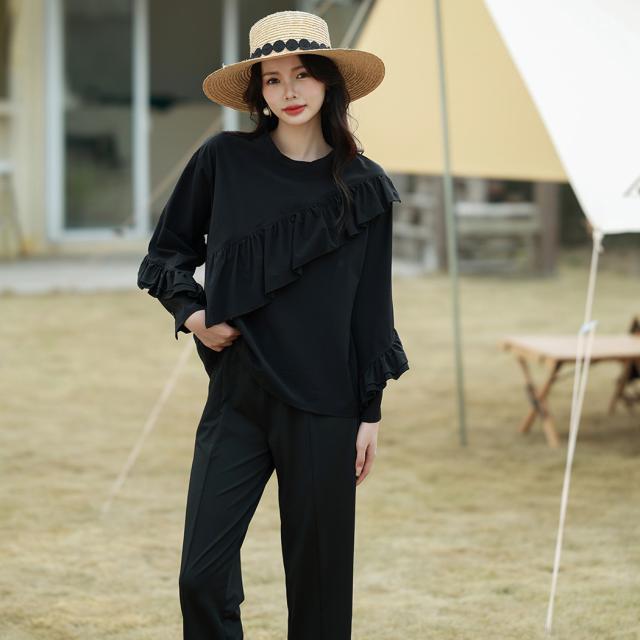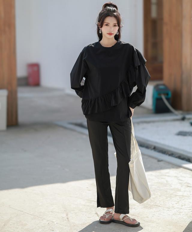 春新作 接触冷感 UVカット率 99%以上 ラッシュガード レディース 長袖 セットアップ 水陸両用水着 UPF50+ ひんやり フードなし ボトムス パンツ 体型カバー 2点セット 薄手 フリル 黒 パフスリーブ 二の腕 ウエスト ヒップ 太もも 脚 カバーアップ
